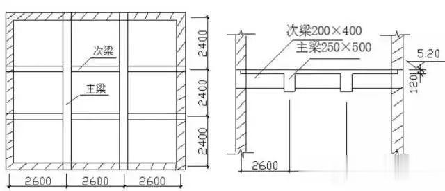 [例]某现浇钢筋混凝土有梁板,如图所示,胶合板模板,钢支撑,计算有梁板模板工程量,确定定额项目。
