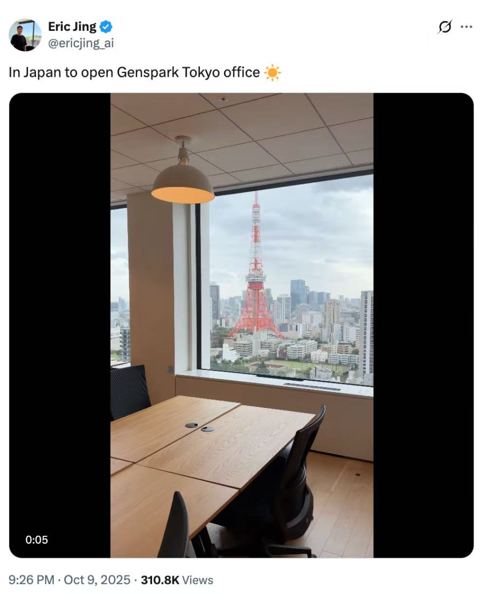 联合创始人兼CEO景鲲发帖称设立东京办公室(图源:X)