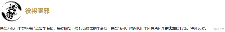 卜灵的小技能主要是印记获取器,只有伤害没有什么特殊效果,普通大招一般也不开,强化大打开法阵,持续为敌人挂电磁效应,2秒2层持续24秒,比守岸人短注意轴长。之后切的第一个角色会获得共鸣技能伤害加成10%,在该角色释放变奏后切的第二个角色会获得技能25%伤害加成。