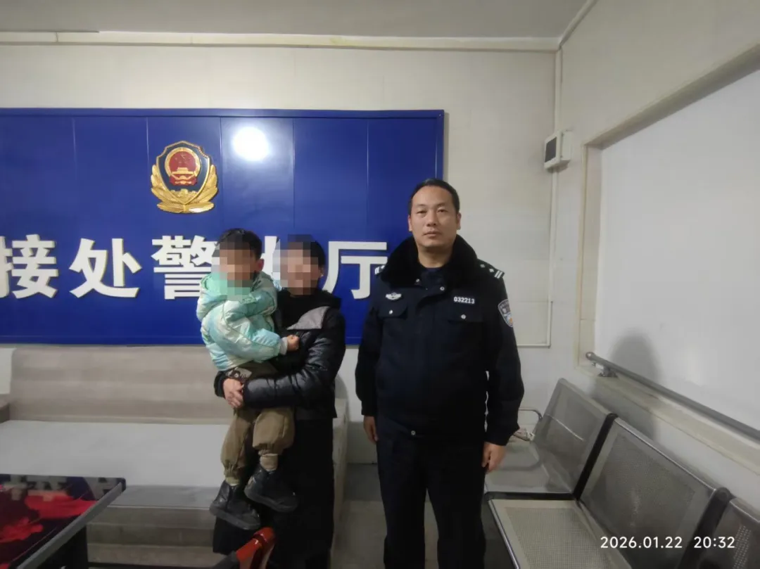 1月22日,温水派出所在开展巡逻时遇群众报警,称附近有一名小男孩独自在路边哭泣,疑似和家人走失,请民警帮助寻找小孩家属。
