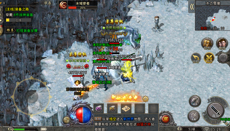 30 级解锁:冰雪平原、自动回收,开始刷怪捡装备。