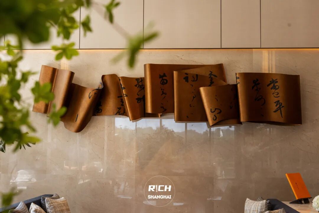 大堂内的艺术品陈设堪称点睛之笔,随处可见融入阳明书法笔韵的艺术挂画、精致摆件,笔墨之间尽显心学底蕴,漫步其中,仿佛穿行在东方的诗画空间。