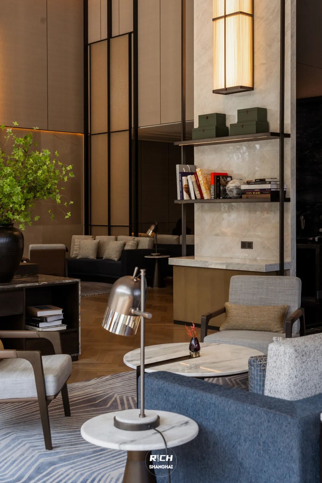 步入大堂,瞬间被通透雅致的空间氛围包裹,没有繁杂的装饰,却处处透着书香门第的艺术格调。