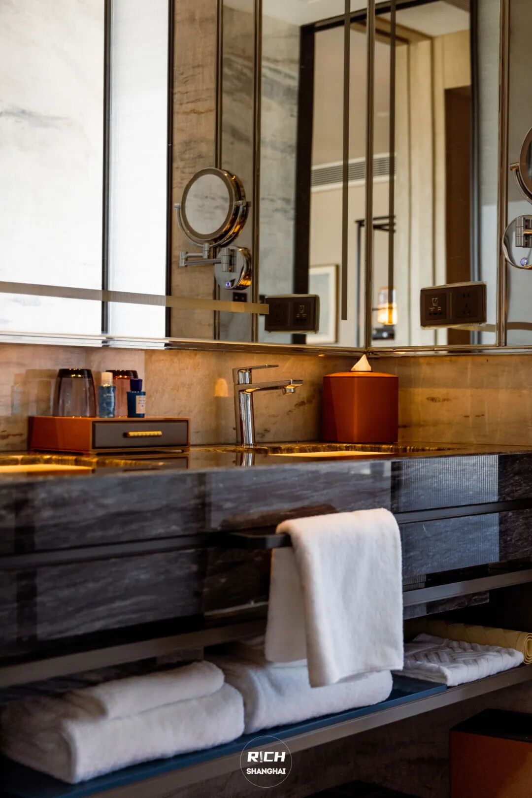 此外,客房内配置着希尔顿标志性的品质设施,Crabtree & Evelyn瑰珀翠洗浴备品,带来沉浸式护肤体验;高清大屏电视、多功能休闲办公区域,兼顾休闲与商务需求;更有多样现代化智能设施,旅居生活由此更加舒适高效。