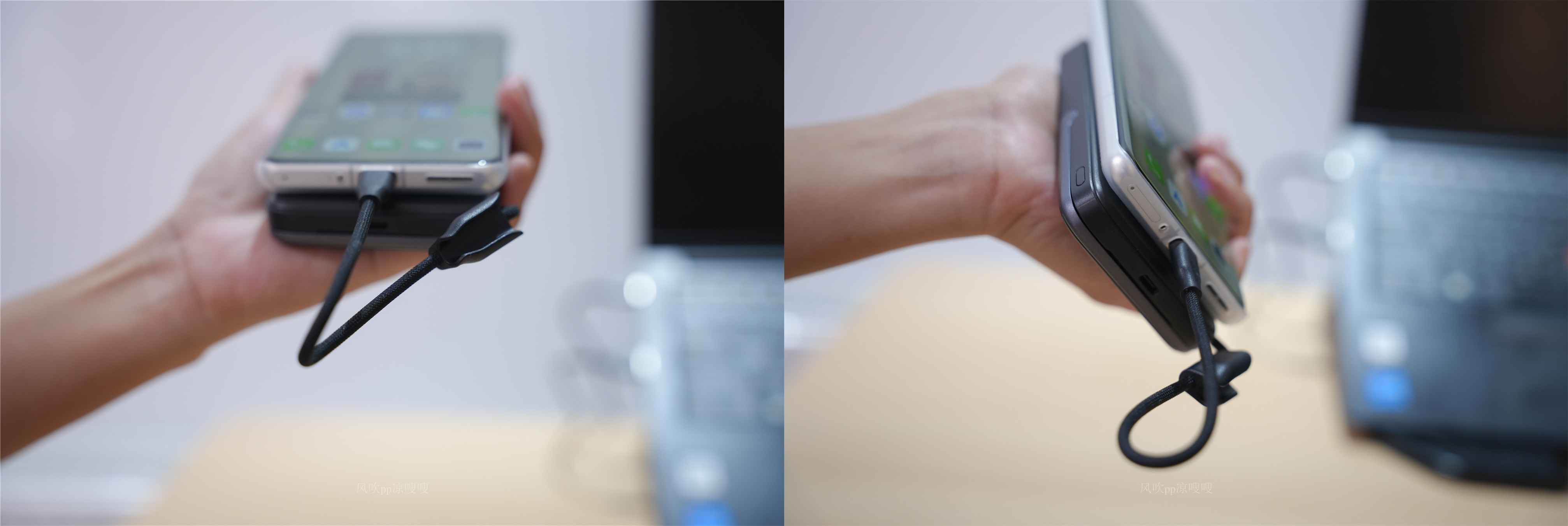 最让我觉得方便的是充电宝背面自带的隐形式一体式支架,阻尼感适中,可以稳固地在横屏和竖屏间切换。横屏看剧,还是竖屏查资料、上网课,它都能让你的手机稳稳立住,解放双手。这个功能让充电宝从一个单纯的供能设备,变成了一个实用的桌面配件。并且背部还带有电量百分比显示,剩余能量一目了然。