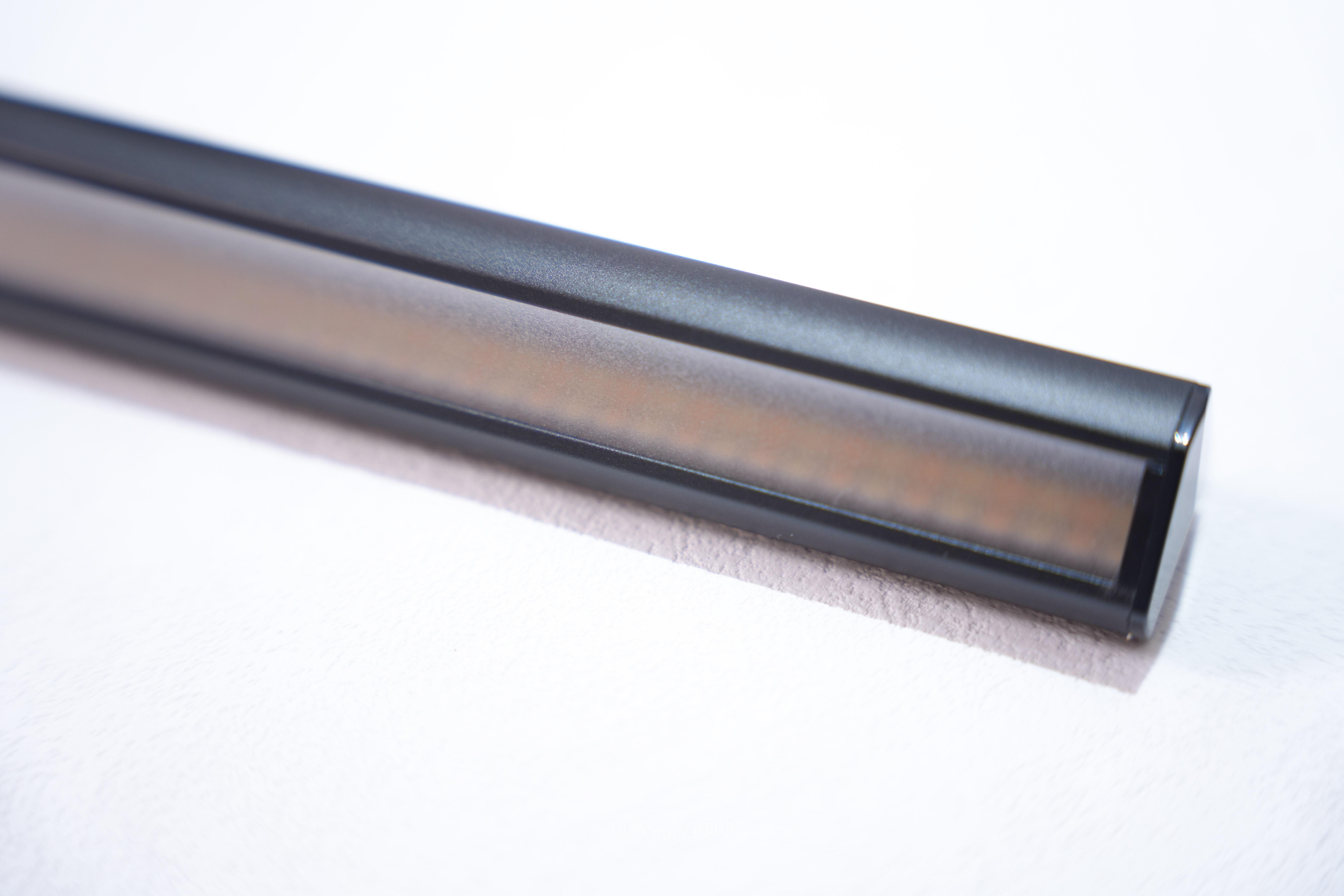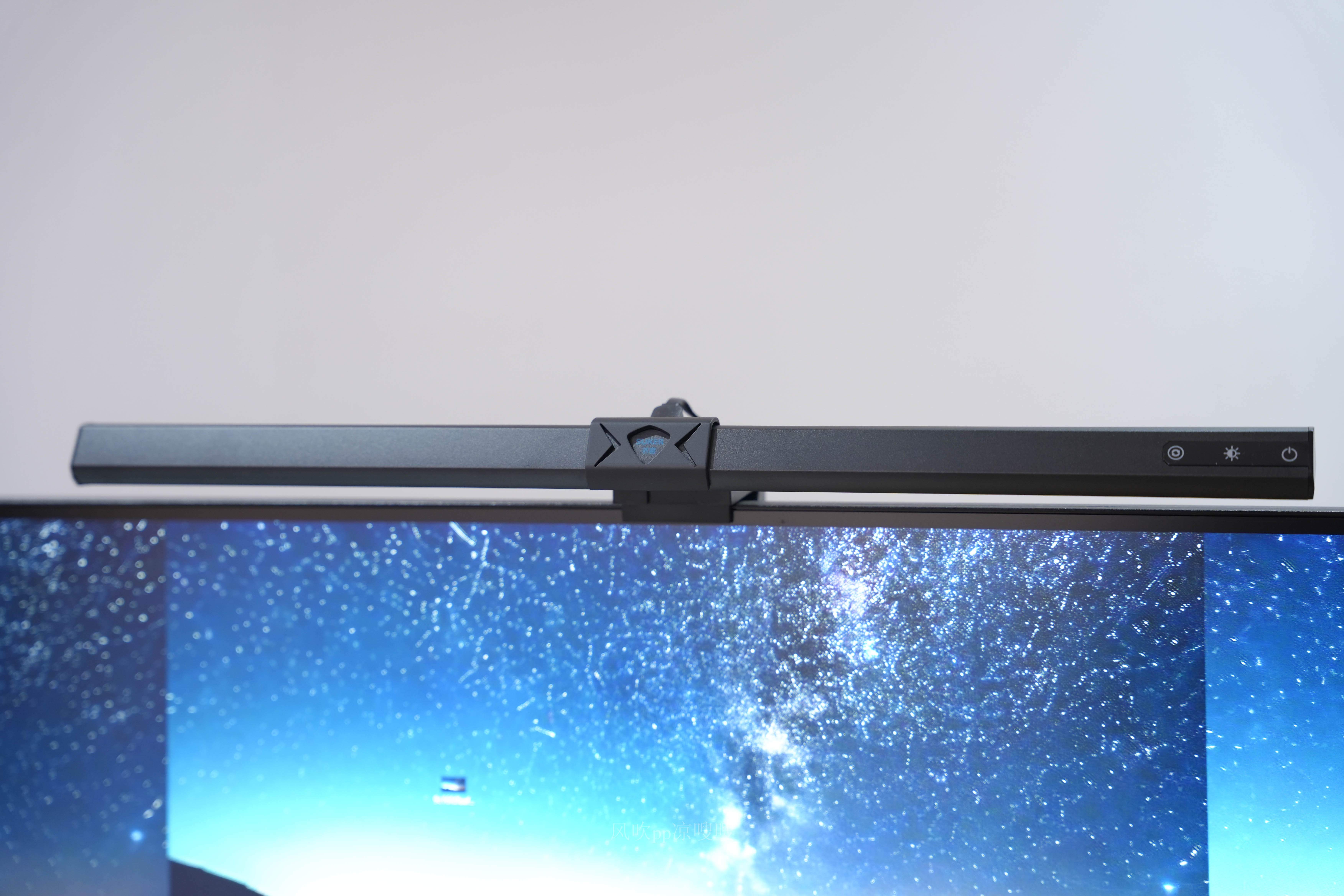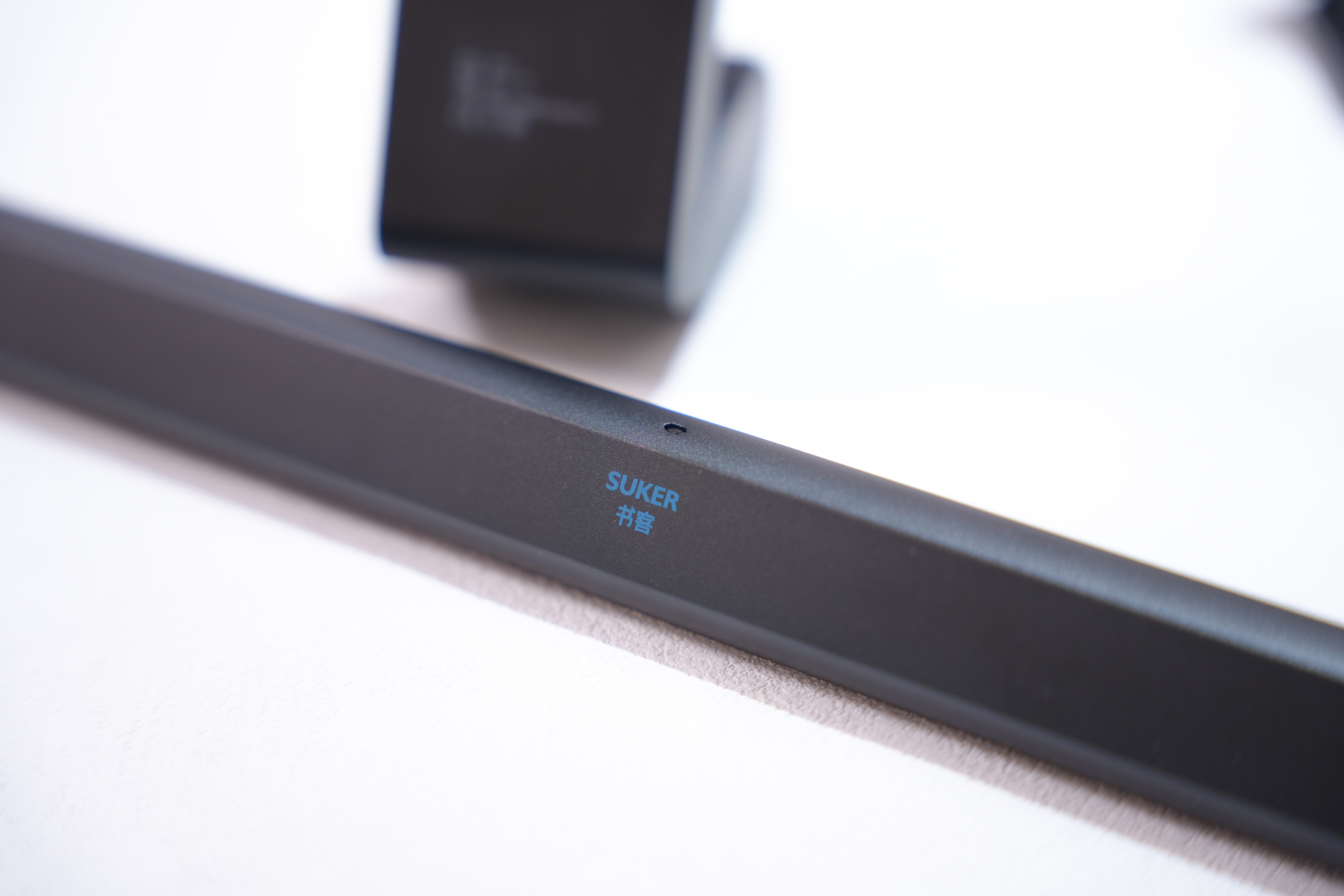 书客SKR1的灯体本身是一根长450mm的铝合金长条,重量仅为130克,上手感觉非常轻巧且质感十足 。细腻的磨砂黑表面处理,让它能与绝大多数显示器的黑色边框完美融合,毫无违和感。铝合金材质不仅保证了耐用性,还有助于高效散热,延长灯珠寿命。