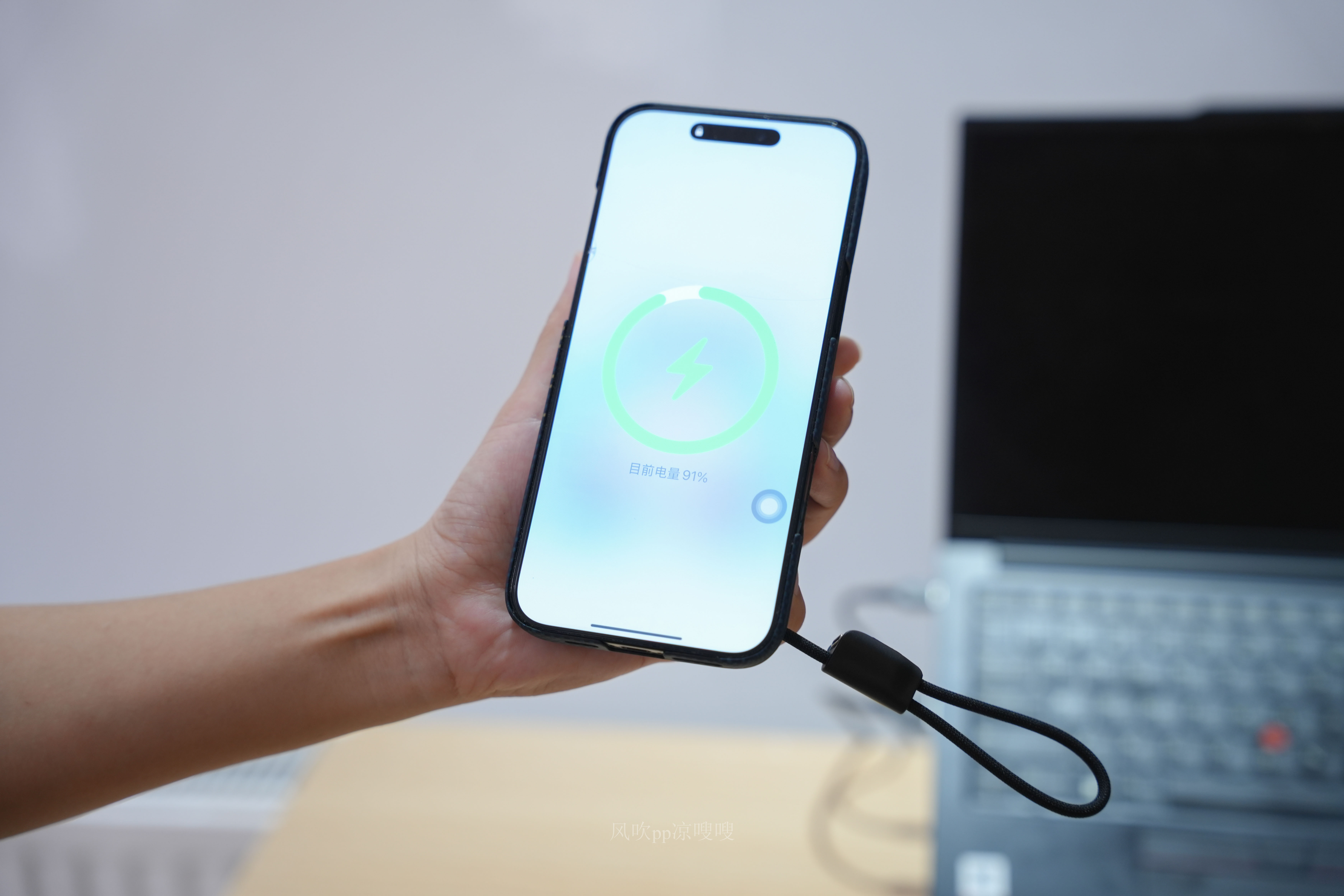 自带线支持PD27W快充,苹果/安卓都能兼容,给手机充电半小时能充约50%的电量。手机贴着充电宝,一拉出来即充,方便快捷。无线/有线随时切换充,出差/旅行/通勤/上课等,多种场景使用都非常方便。