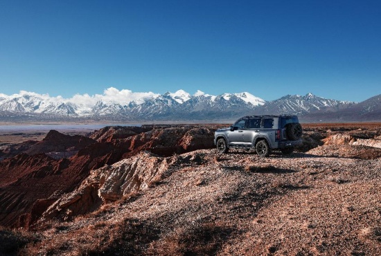 从发布的官图来看,新车整体延续了现款车型的造型设计,车头使用较为粗壮的横向饰条,两侧头灯外部为方形轮廓,内部则使用圆形LED日行灯,点亮后将具有不错的辨识度。另外,新车还配备了车顶平台、前射灯、侧爬梯、全黑六辐式轮毂和AT胎,搭配带有哑光质感的灰色车漆,整体造型更具越野气息。