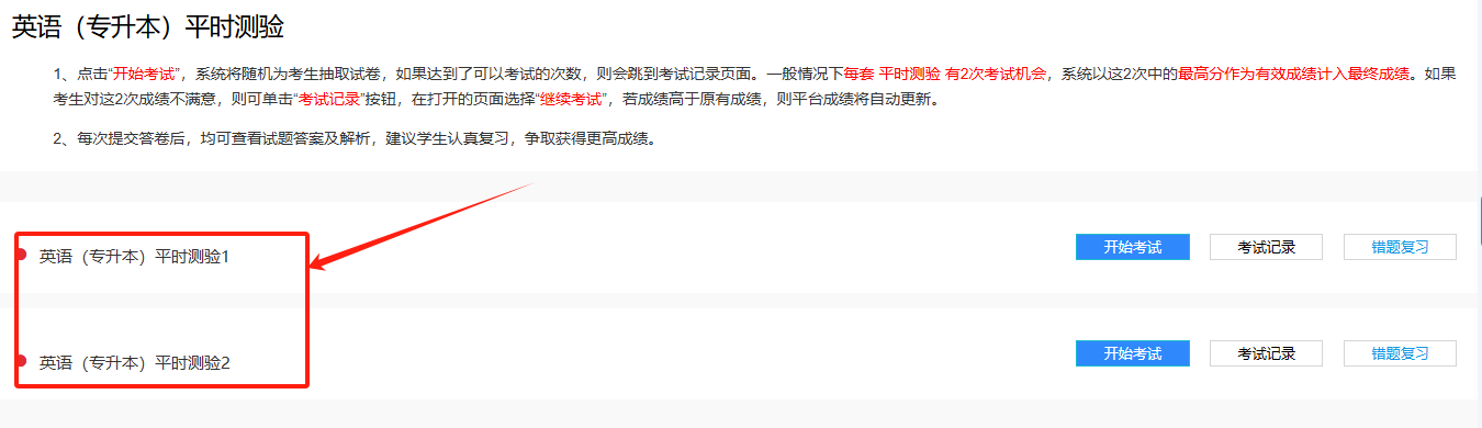每门科目的平时测验共计4个考试记录,将4个考试记录全部做完做对即可完成。