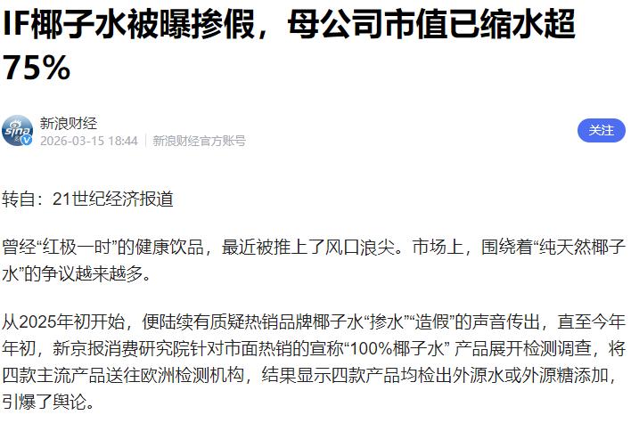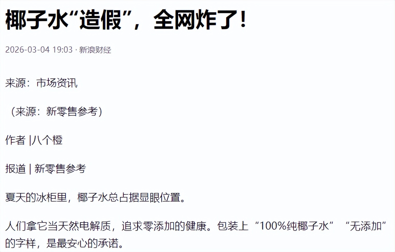 信任彻底崩塌这场风波,最终买单的是谁?是那些为了健康咬牙买十几块钱一瓶椰子水的健身党,是那些觉得配料表干净放心给孩子喝的父母。