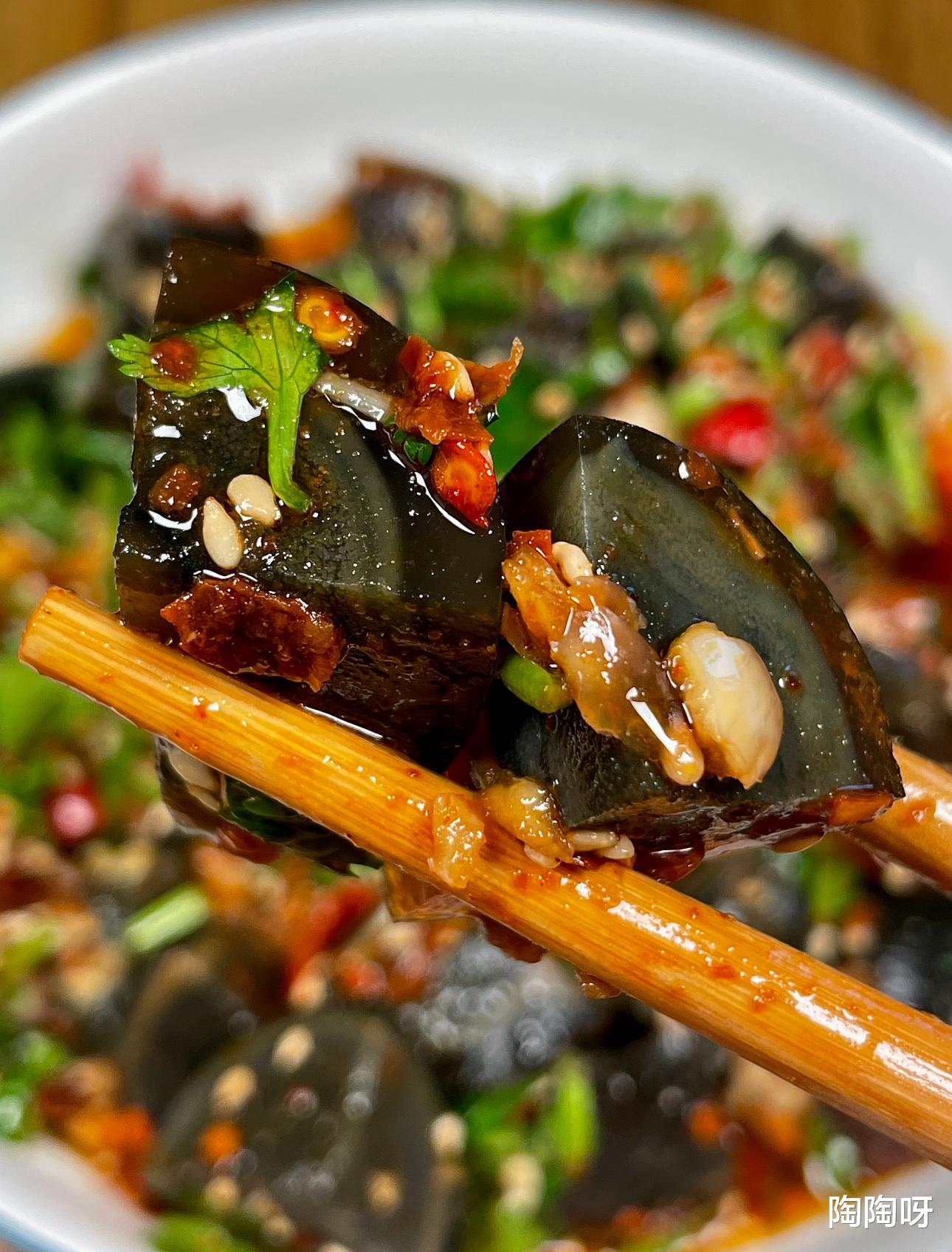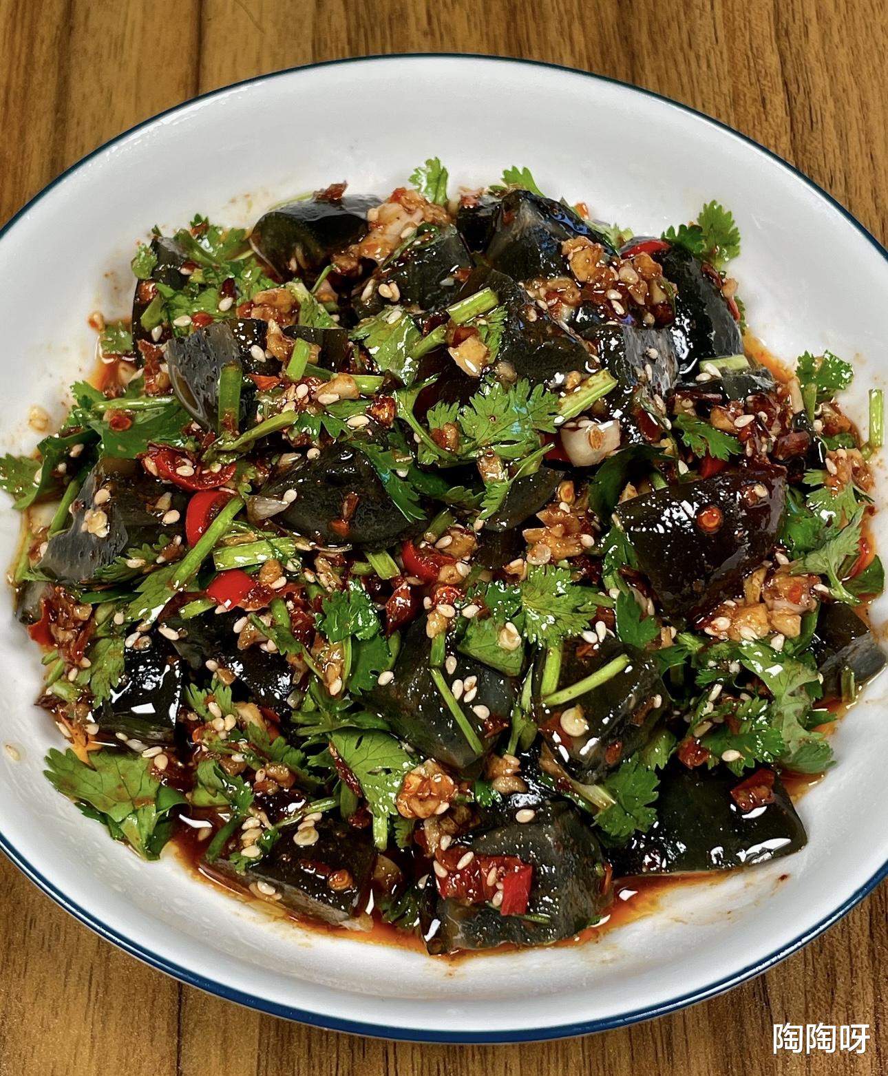 这道香菜拌皮蛋,看似“黑暗料理”,实则“味觉炸弹”。
