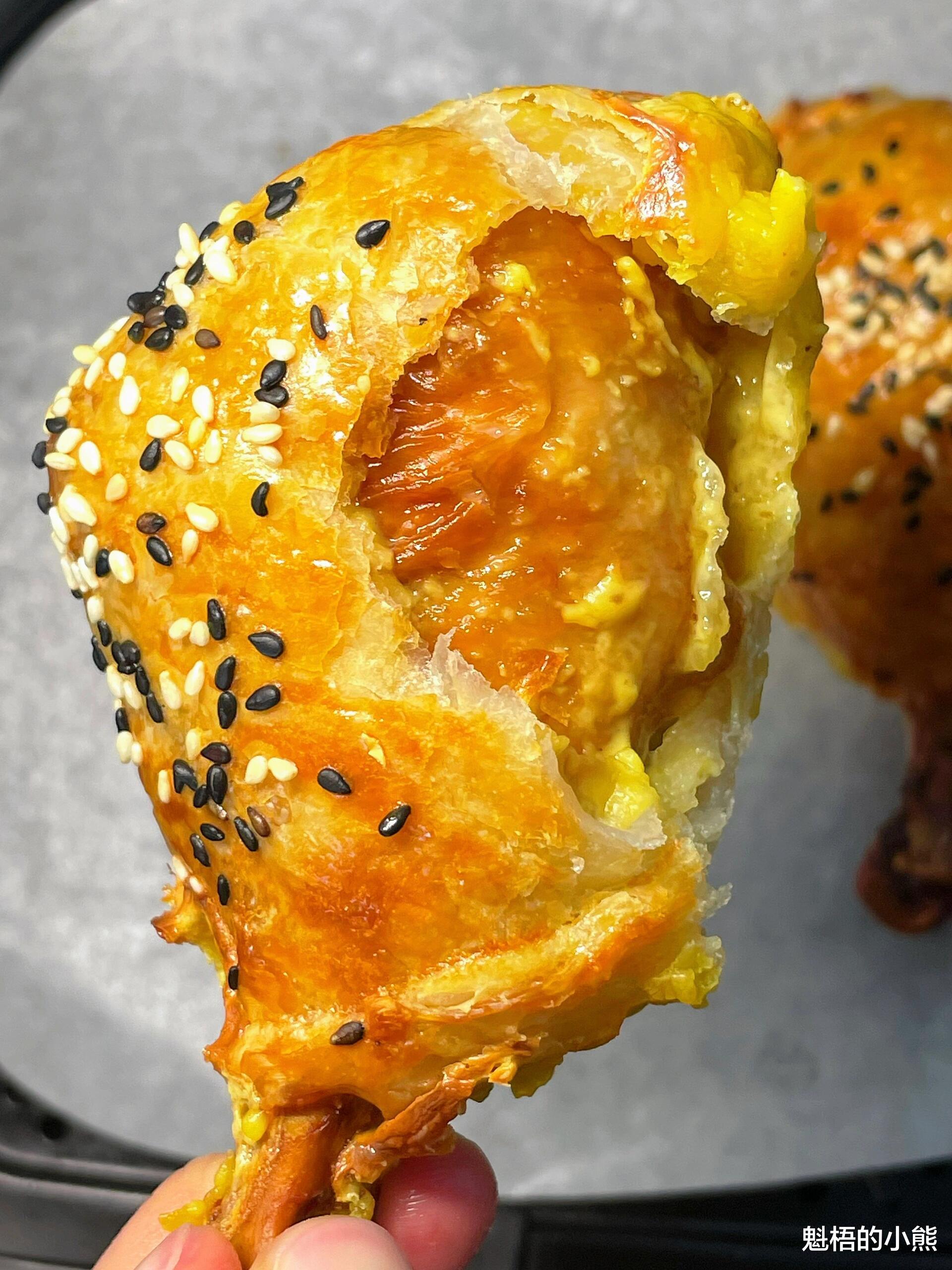 刷手机的时候,看到一个博主在晒她做的芝士鸡腿包,金灿灿的饼皮裹着整只鸡腿,切开的一瞬间,芝士拉出长长的丝,热气裹着肉香扑面而来。她说这是她家的招牌菜,手抓饼当外皮,空气炸锅就能搞定,外皮酥脆、鸡腿鲜嫩多汁,还混合着奶香奶香的芝士。我盯着屏幕看了半天,咽了咽口水——这不就是为懒人准备的神仙吃法吗?不用和面,不用起油锅,有手就能做。第二天一早我就去买了鸡腿和手抓饼,照着方子做了一次。出炉的那一刻,整个人都愣住了:饼皮酥脆得掉渣,咬一口,里面的鸡腿肉鲜嫩多汁,芝士融化在肉缝里,咸香浓郁,真的太好吃啦!孩子放学回来,一口气吃了2个,边吃边说:“妈妈,这个比汉堡还香!”从那以后,这道芝士鸡腿包就成了我家最受欢迎的硬菜。有空气炸锅的都去试试,鸡腿这样做嘎嘎香,省时省力还解馋。