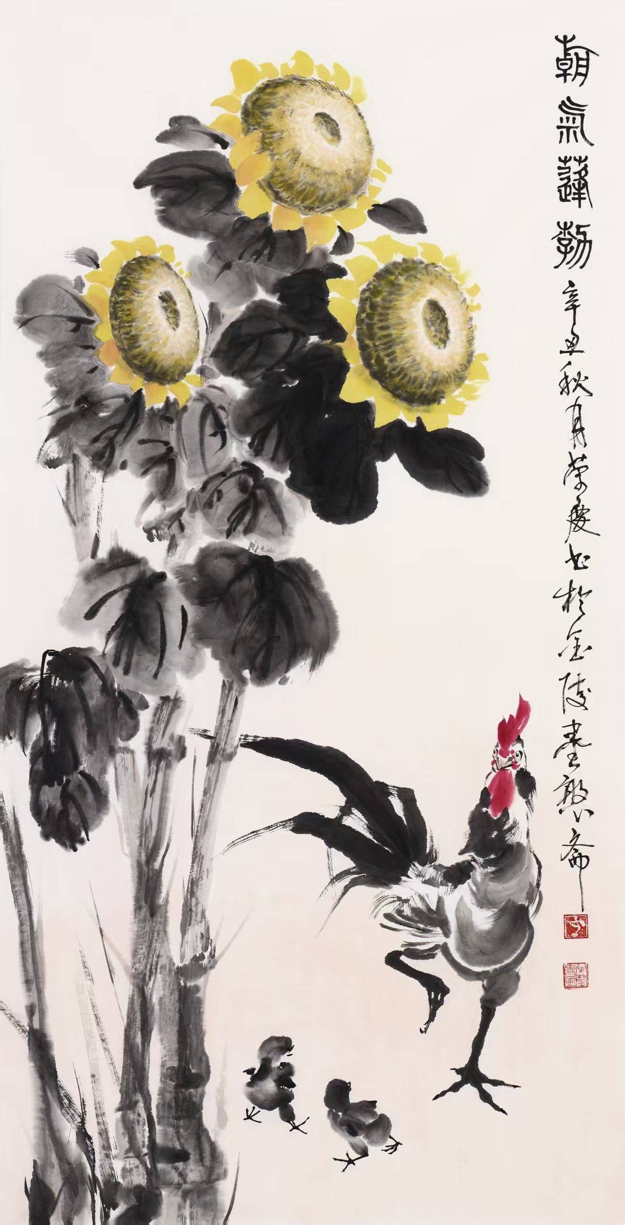 2019年,中国画《盛世祥光》入选庆祝建国七十周年《江苏省优秀花鸟画展》。