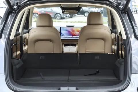 座椅布局的灵活性也是蓝电E5 PLUS第三代的一大亮点。它支持1 - 7座多种场景调整,能够满足不同家庭的出行需求。情侣短途出行时,可以将后排座椅放倒,腾出足够的空间放置行李箱和露营装备;三代同堂出行时,7座布局能让每位家庭成员都有独立的乘坐空间;当需要搬运大件物品时,将第二、三排座椅全部放倒后,后备箱容积可拓展至1694L,像婴儿车、折叠床等大件物品都能轻松装载。此外,车内设计了33个储物空间,门板储物格可以轻松容纳500ml水瓶和折叠伞,中控下方的储物槽能同时放置手机和车钥匙,这些贴心的细节设计,让车内物品摆放更加整齐有序,减少了杂乱感。