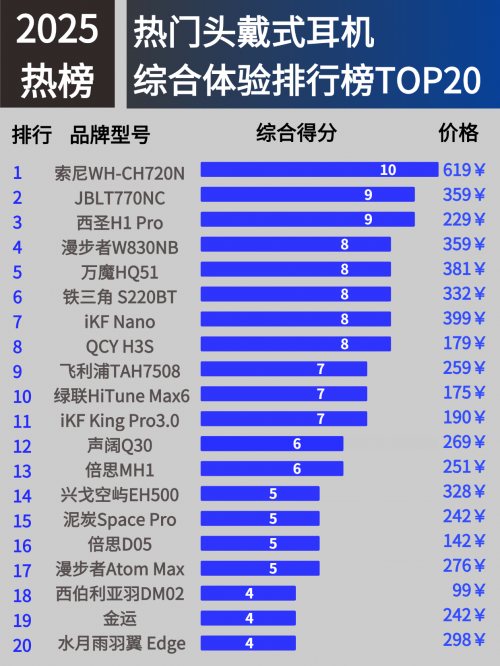 那么,300以内哪个品牌的头戴式耳机好用?我这几个月实测了市面上二十多款热门耳机,终于筛出十大百元头戴式耳机品牌机型。从通勤党到游戏玩家,从追求音质的到看重颜值的,保证都能找到适合自己的那一款。接下来就带你快速锁定目标,告别选择困难!