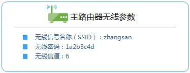 1.登录打开路由器管理页面地址——>记录下主路由器的“无线名称”“无线密码”和“信道”。