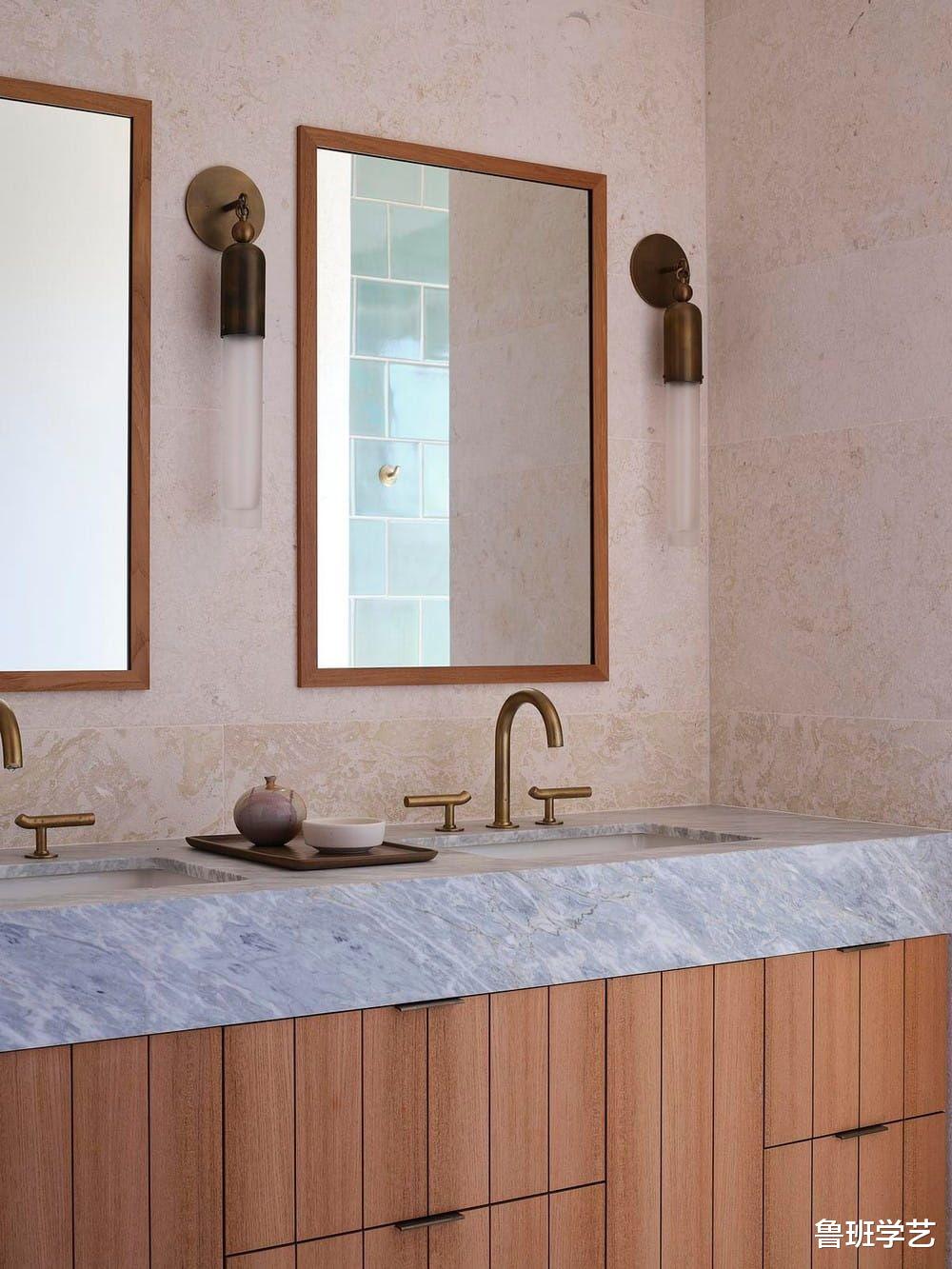 特别有意思的花瓷砖,与纯石材打造出的洗手池搭配。