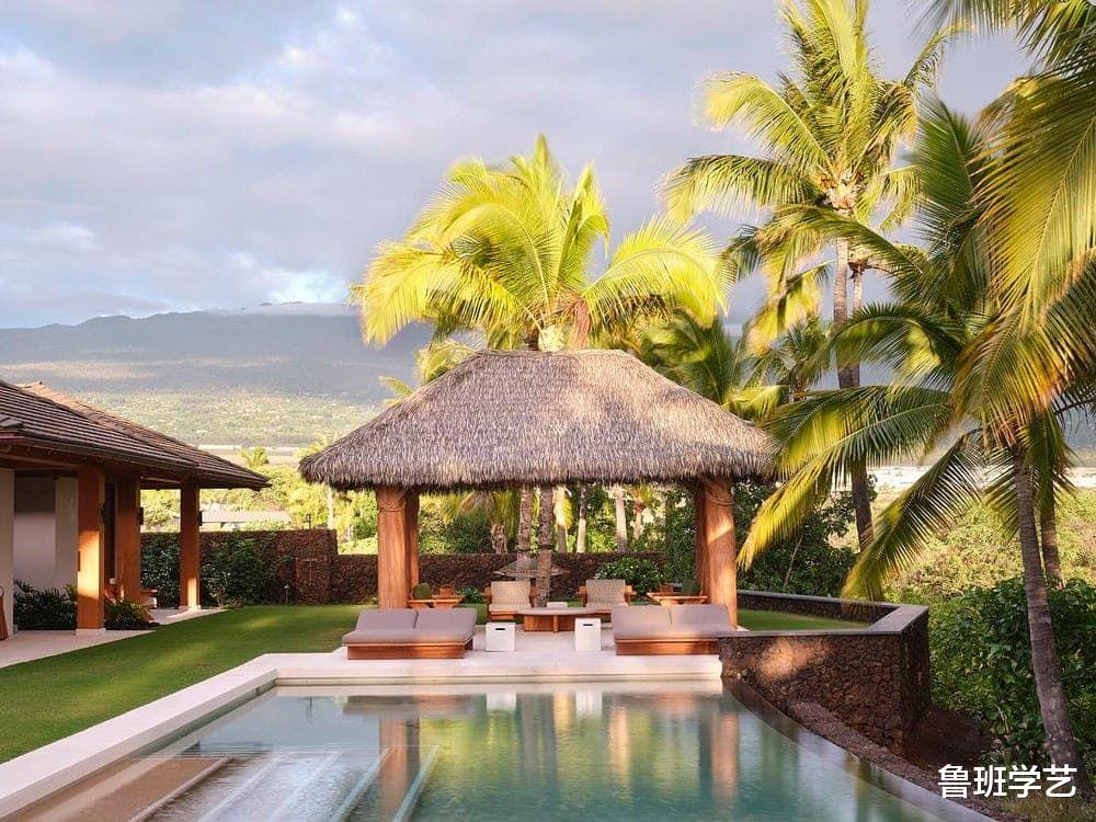 夏威夷的游泳池是必不可少的,蓝田碧云与游泳池连成一片,营造出海边天际的感觉。