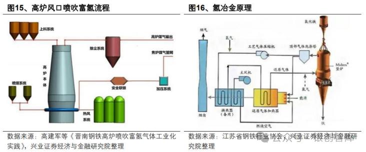 高炉富氢冶炼基于传统高炉,喷吹天然气、焦炉煤气等富氢气体,因焦炭骨架作用无法完全替代,氢气喷吹量有极限,碳减排幅度有限,一般在 10%-20%。