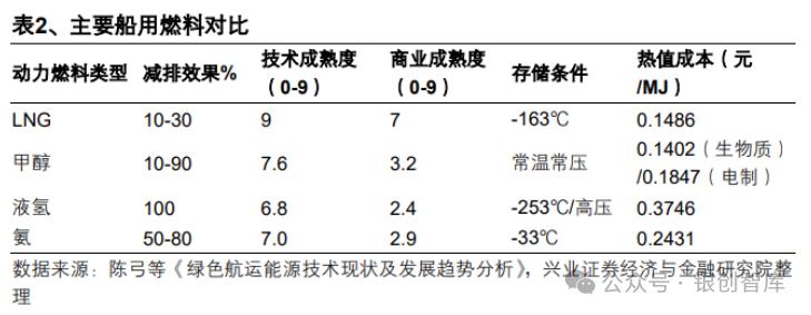 绿色甲醇是远洋船舶减碳的最主要替代能源选择之一,相较 LNG、氨、液氢等燃料,其存储条件为常温常压,热值成本适中,兼顾成本和降碳潜力。