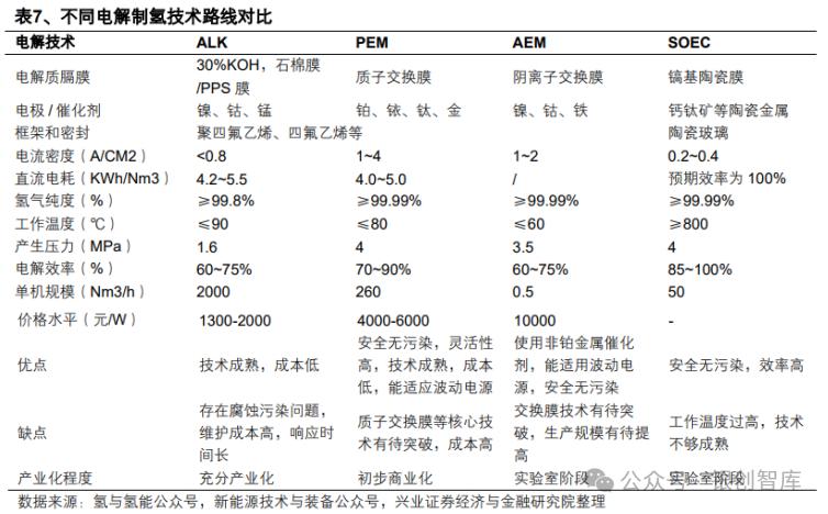 PEM 制氢技术性能潜力更强,响应速度快,能更好匹配风电、光伏等波动性电源出力特性,生产过程无污染,但核心部件质子交换膜高度依赖进口,且需使用铂等贵金属作为催化剂,成本居高不下。AEM 和 SOEC 制氢技术尚处于商业化早期阶段。