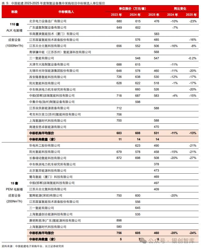 1)参与企业数量增加:ALK标包从11家增至14家,PEM标包从5家增至8家,表明行业竞争加剧,更多企业进入制氢设备领域。