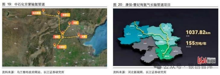 2025 年氢能管道输送的标准和政策引导进展迅速:发布《天然气长输管道掺氢输送适应性评价技术指南》、《压力管道规范第 5 部分:氢用管道》,填补国内技术标准空白;国家能源局出台多项政策,稳妥有序探索管道输氢项目试点应用,要求试点管道长度不少于 100km;国内涌现中石化京蒙输氢管道、海泰新能康保 - 曹妃甸千公里级纯氢管道等典型项目。