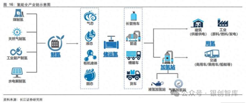氢能产业链复杂绵长,主要包括 “制氢→储氢→运氢→加氢→用氢” 几个环节,各环节发展进程如下:
