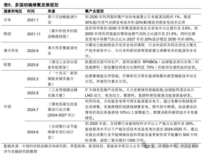 氨的传统用途中农业占比 71%(生产氮肥)、工业占比 29%(制造硝酸、制冷剂等),目前绿氢在合成氨领域已有较多示范项目,推动绿氨市场规模快速释放,截至 2024 年末全球绿色合成氨项目超 300 个、涉及产能约 4200 万吨,中国以 100 个项目、规划产能约 2037.33 万吨占全球近半。