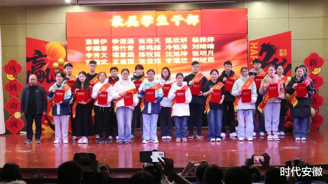 联欢会期间穿插四次颁奖环节,依次揭晓“最美学生干部”“最美员工”“最美教师”“最美班主任”获奖名单,以表彰先进树立榜样,激励全体师生踔厉奋发、追求卓越;同步揭晓校园十大新闻,带领全体师生回顾学校年度发展历程,凝聚奋进共识。