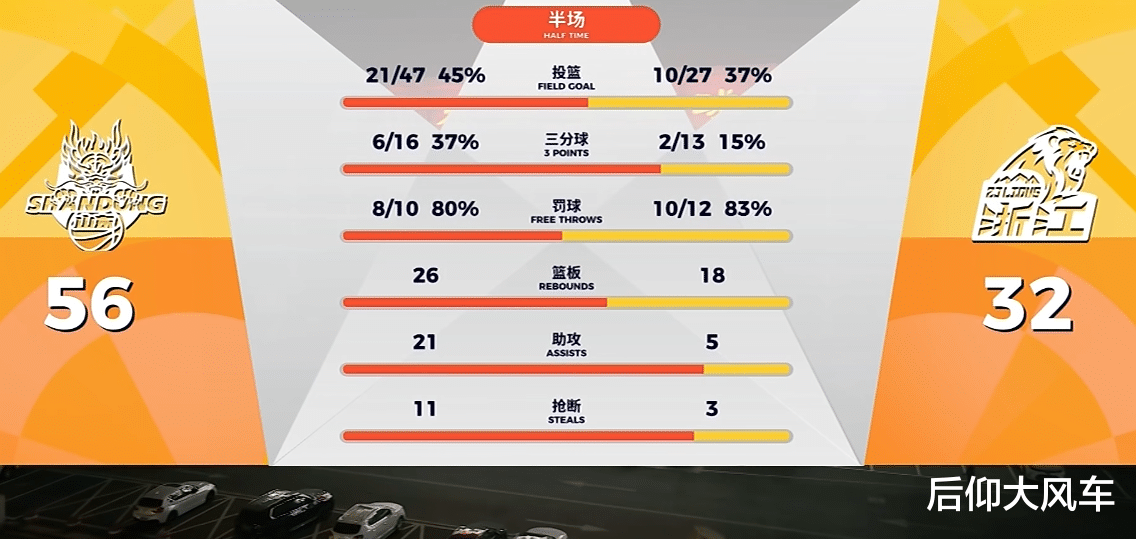 半场打完,山东在鲍威尔、陶汉林、克里斯合砍42分的带领下,取得56-32领先广厦,几乎可以说是完全碾压广厦!得分篮板助攻抢断,数据全面领先广厦,胡金秋正负值-25,孙铭徽-29,布朗毫无状态,广厦三巨头合计仅得7分。