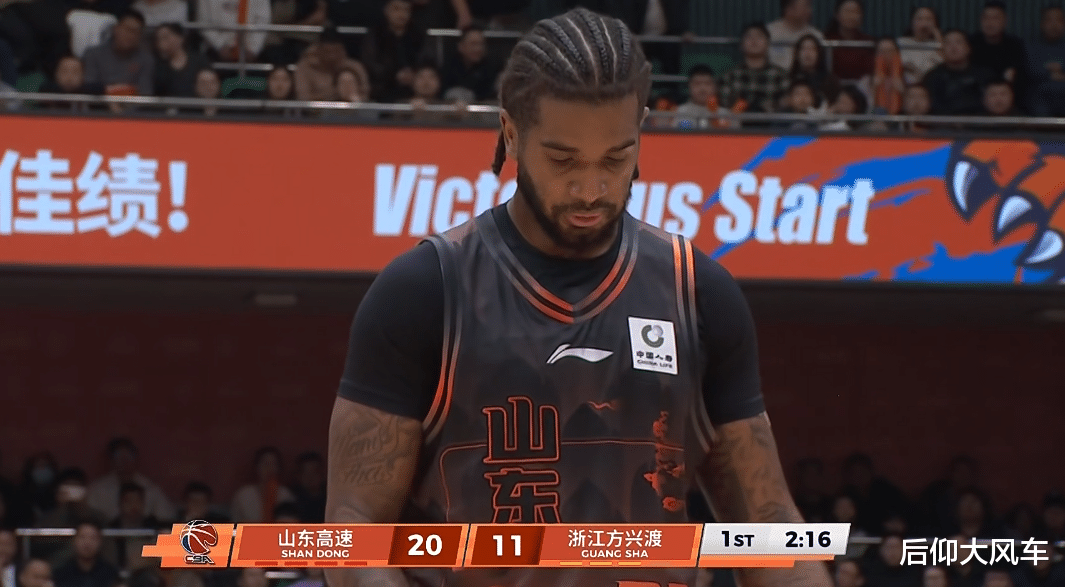 次节开局鲍威尔表现神勇,送上大帽+反击突破+三分连得5分,克里斯隔扣塔克制造2罚,鲍威尔反击三分再进,山东一波3分钟13-6,一口气领先来到39-24!
