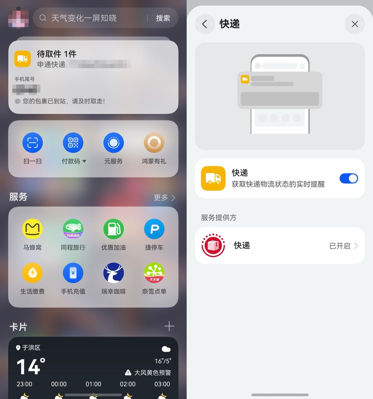 周末的快乐还体现在回家“拆盲盒”。刚刚收到提醒,双十一买的运动装备都陆续送到了快递站。以前去拿快递前都要在各个应用里找半天,先切换不同购物平台看看哪些快递到了,再一个一个翻取件码取快递。而现在负一屏顶部的快递动态卡片直接帮大忙,它聚合了所有平台的物流信息和取件码,只要一点开,快递信息、取件码一目了然,取件也就更轻松从容。