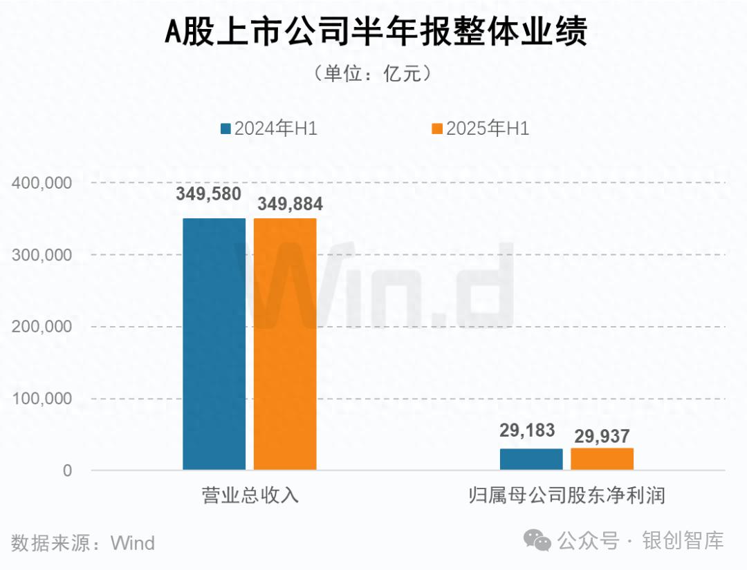 近期,沪、深、北三家证券交易所共5432家上市公司披露2025年半年报数据。据Wind数据显示,截至至8月30日,上半年营收34.99万亿元,同比增长0.02%;归母净利润2.99万亿元,同比增长2.45%。其中4178家实现盈利(占比77%),2908家归母净利润同比增长(占比54%),661家增幅超100%。
