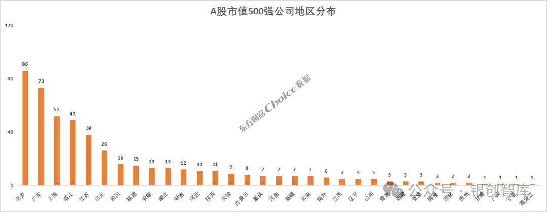 从Wind最新发布的2025年上半年“中国上市企业市值500强”榜单可看出,行业分布数量前三分别为电子行业(61家上市公司,占比12.2%,市值最高公司为中芯国际)、非银金融行业(41家上市公司,占比8.2%,市值最高公司为中国人寿)、医药生物行业(40家上市公司,占比8%,市值最高公司为百济神州-U);地域分布大多集中在北京、广东、上海和浙江。