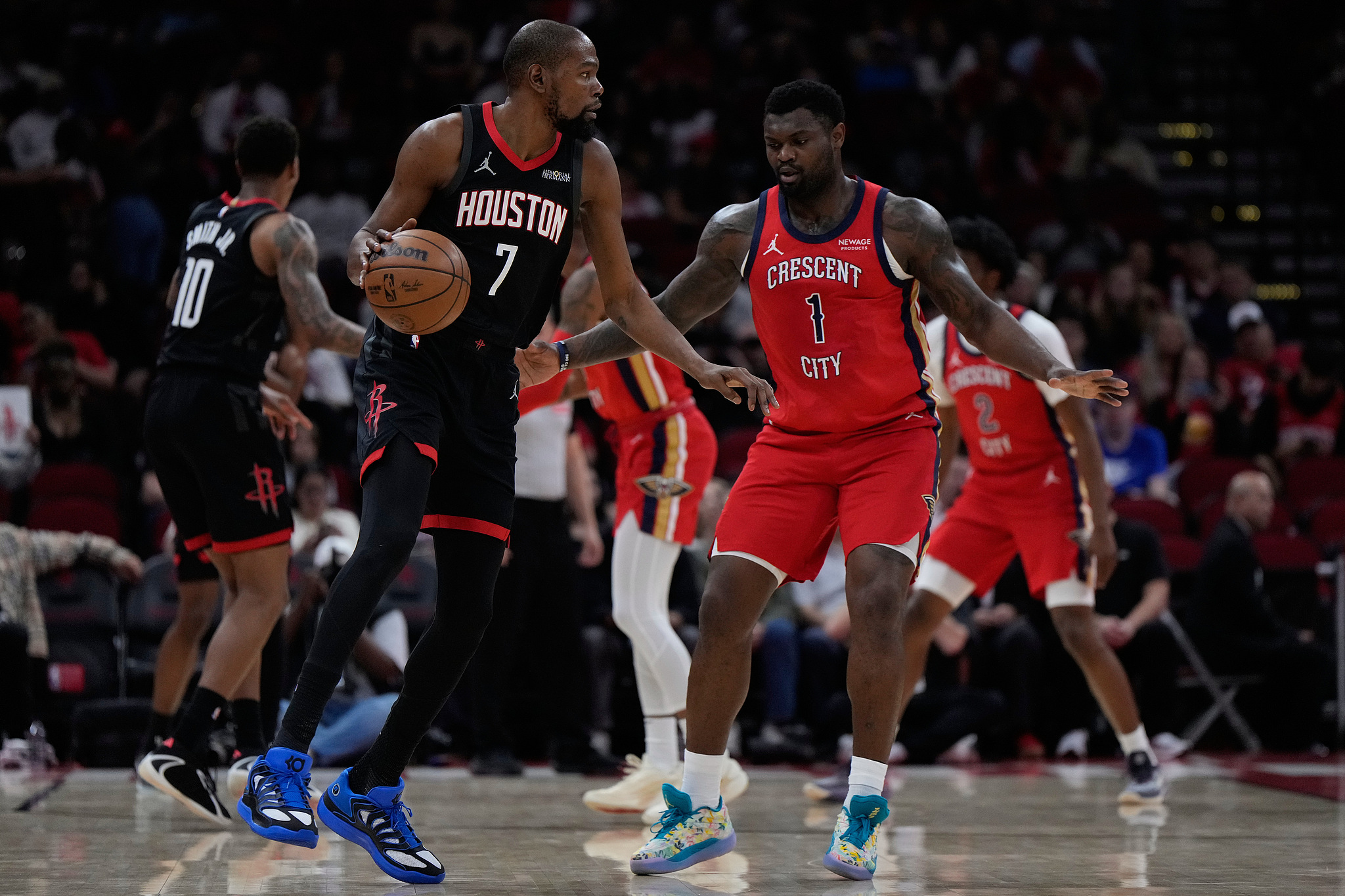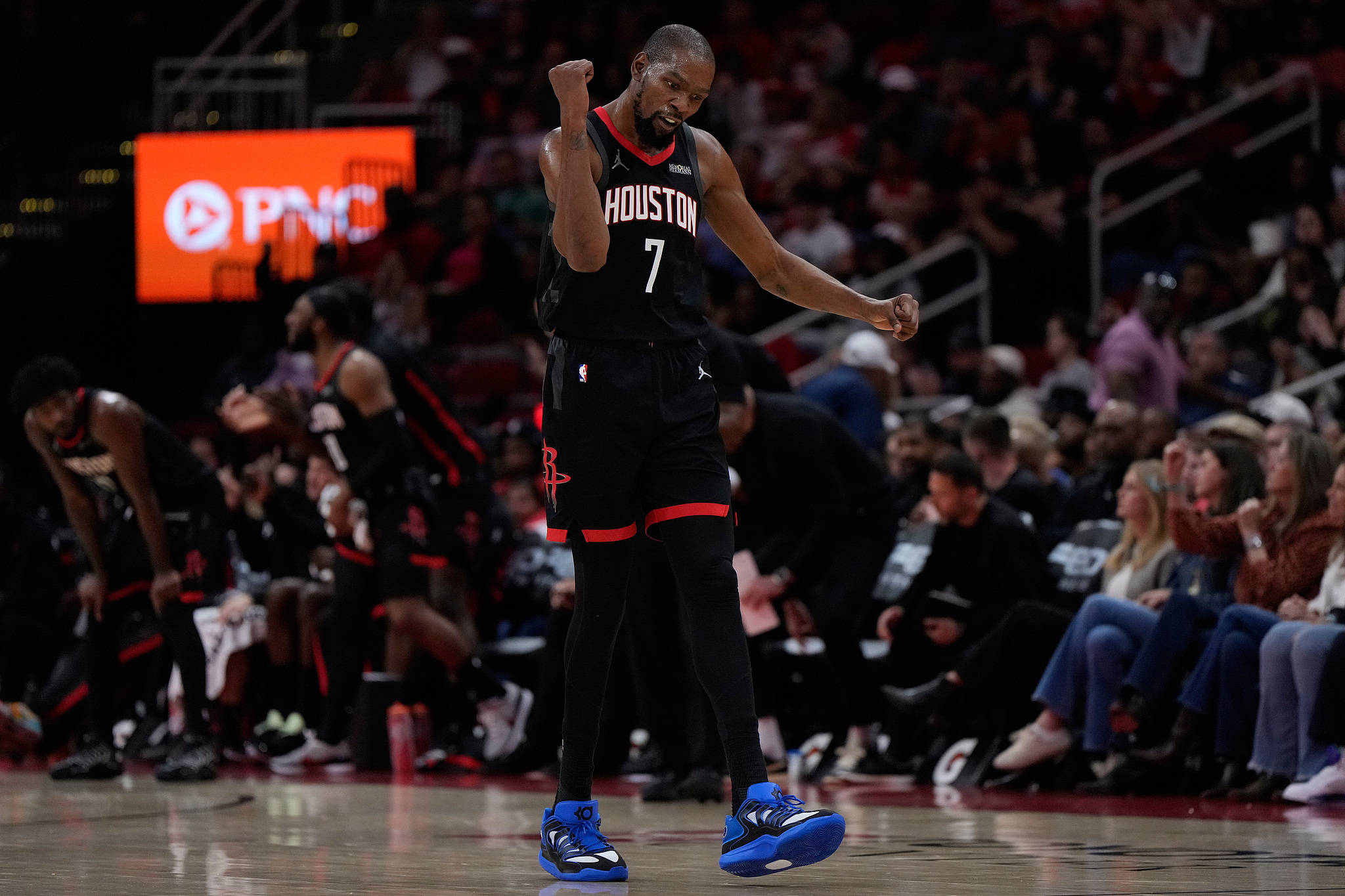 北京时间3月14日,NBA常规赛火箭主场107-105击败鹈鹕,赢球后火箭战绩来到41胜25负,反超湖人重返西部第三,杜兰特全场24投13中、三分7中3拿到32分6篮板5助攻,关键时刻连续犯错,但招牌中投准绝杀以及罚球制胜,将功赎罪拒绝逆转。