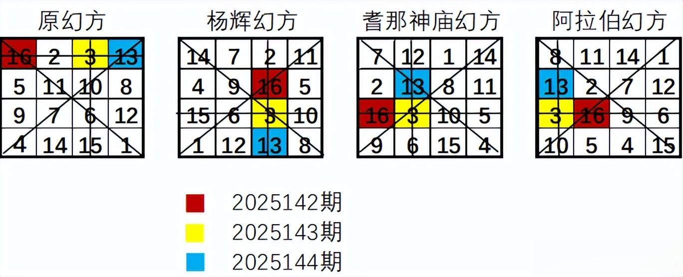 1、2025145期蓝球给出标准幻方(原幻方)和三个经典完美幻方图,如下图。