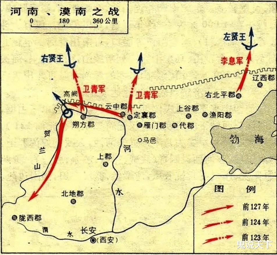 根据史料的记载,元朔二年(前127年),被视为汉匈之战转折点的河南战役爆发,卫青率军一举夺回河套地区。元朔三年(前126年),匈奴因为军臣单于之死爆发内乱。元朔四年(前125年)到元朔六年(前123年),汉军与匈奴在代郡,定襄郡、上谷郡、高阙、定襄等地进行主力交战。