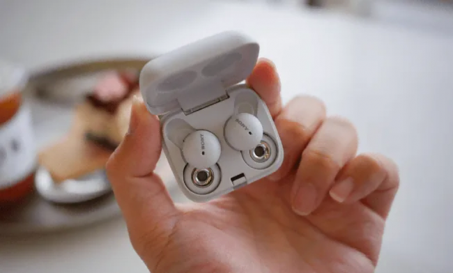 索尼LinkBuds凭借别具一格的外观,在真无线耳机市场中拥有很高的辨识度。耳机本体采用环保塑料材质,触感细腻柔和;充电盒设计与耳机风格一致,视觉与触感和谐统一。整体造型简约雅致,SONY标识及左右声道标记清晰规整,左单元上端的微小凸起也体现了品牌在设计细节上的用心。不过由于开放式结构,耳机无法调节佩戴角度,初次使用者可能需要一些时间适应。