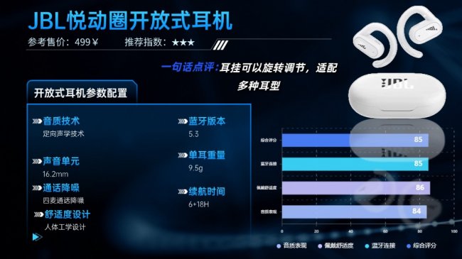 JBL Sound Gear Sense音悦圈延续了品牌在运动音频领域的技术积累。音质方面,耳机搭载16.2mm大尺寸动圈单元,配合轻量化多层复合振膜,呈现出JBL标志性的饱满听感。低频经DSP低音增强算法调校,下潜更深且富有弹性,整体风格厚实稳健。通话时,采用定向拾音与降噪技术,即便在嘈杂环境中也能保障语音清晰稳定。