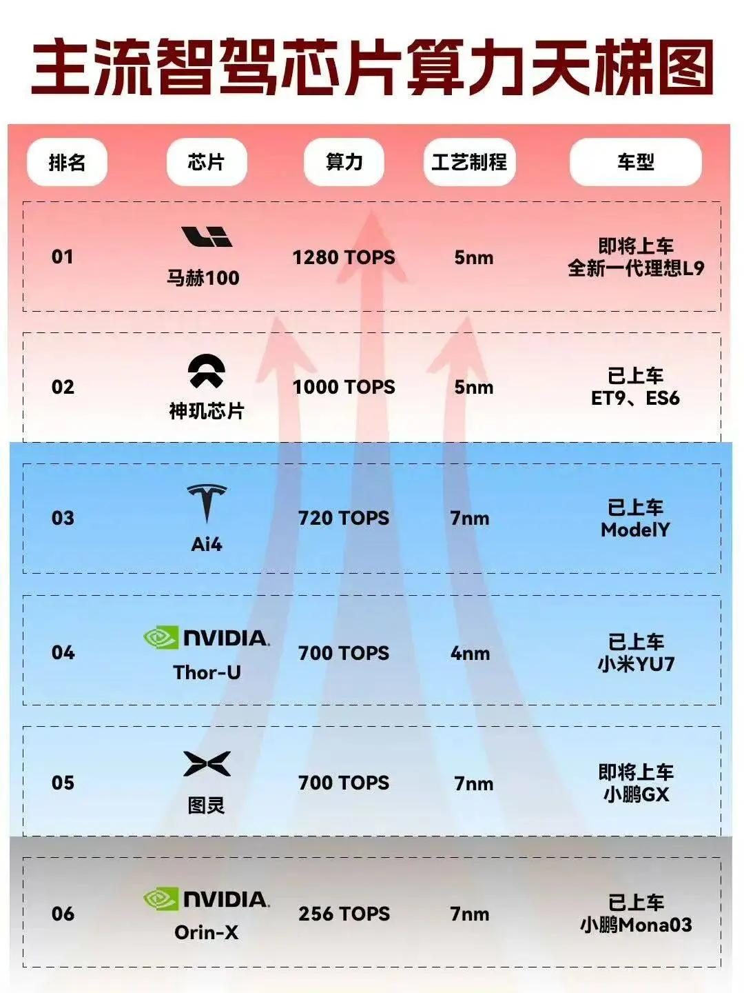 在艰难中转型的理想汽车目光更遥远,要从汽车进化为“具身智能”Ai企业。其中,5纳米车规级智驾芯片 “马赫100” 被寄以厚望,单颗有效算力1280 TOPS,双芯协同下整体算力达到2560 TOPS,有效算力是英伟达Thor-U芯片的三倍。搭载马赫100芯片的全新旗舰车型理想L9将在今年二季度上市。