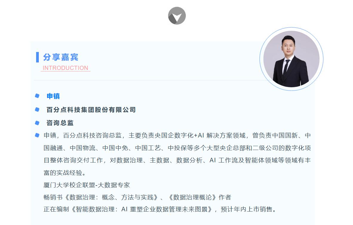 导读 本次分享主题是百分点科技在央国企以 Data+Al 相关的数据治工作以及具体落地场景。
