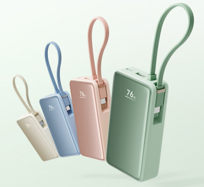 最让我觉得省心的就是它自带线,还是Type-C和Lightning双接口的,我有时候用苹果手机,有时候用安卓平板,不用额外带线,也不用来回换线,直接插上去就能充,收纳起来也不占地方,再也不用为了带线烦恼了。