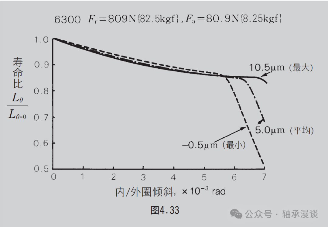 二、深沟球轴承内外圈倾斜对轴承寿命影响曲线