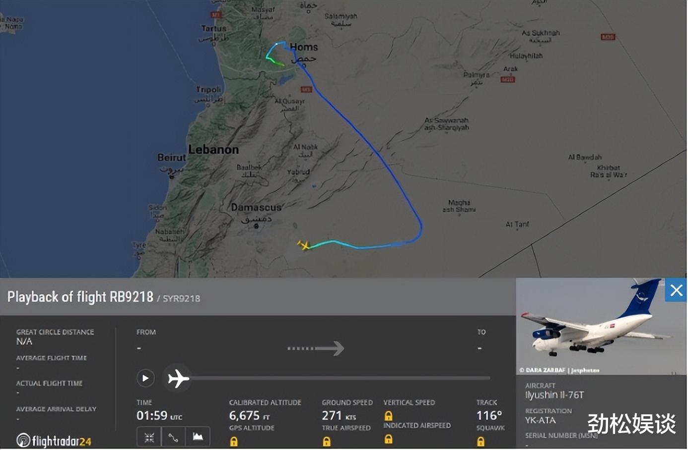 另据媒体报道称,一架叙利亚航空公司的伊尔-76(呼号SYR9218)飞机从叙利亚大马士革国际机场起飞后不久就失去了踪迹,疑似坠毁。而且叙利亚知情人士证实了阿萨德已登机。
