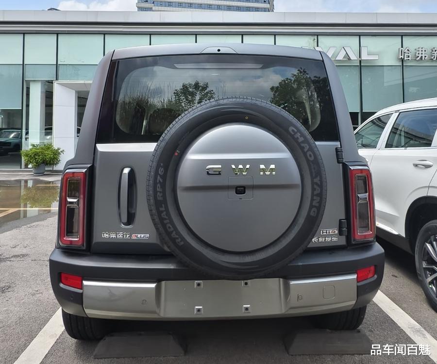 车尾位置,包含侧掀门、全尺寸外挂式备胎、长条形竖向尾灯以及融入了大面积银灰色饰板的粗壮后保杠等硬派设计细节,依然会存在于哈弗猛龙PLUS的尾部,可进一步烘托其硬派越野SUV的身份。