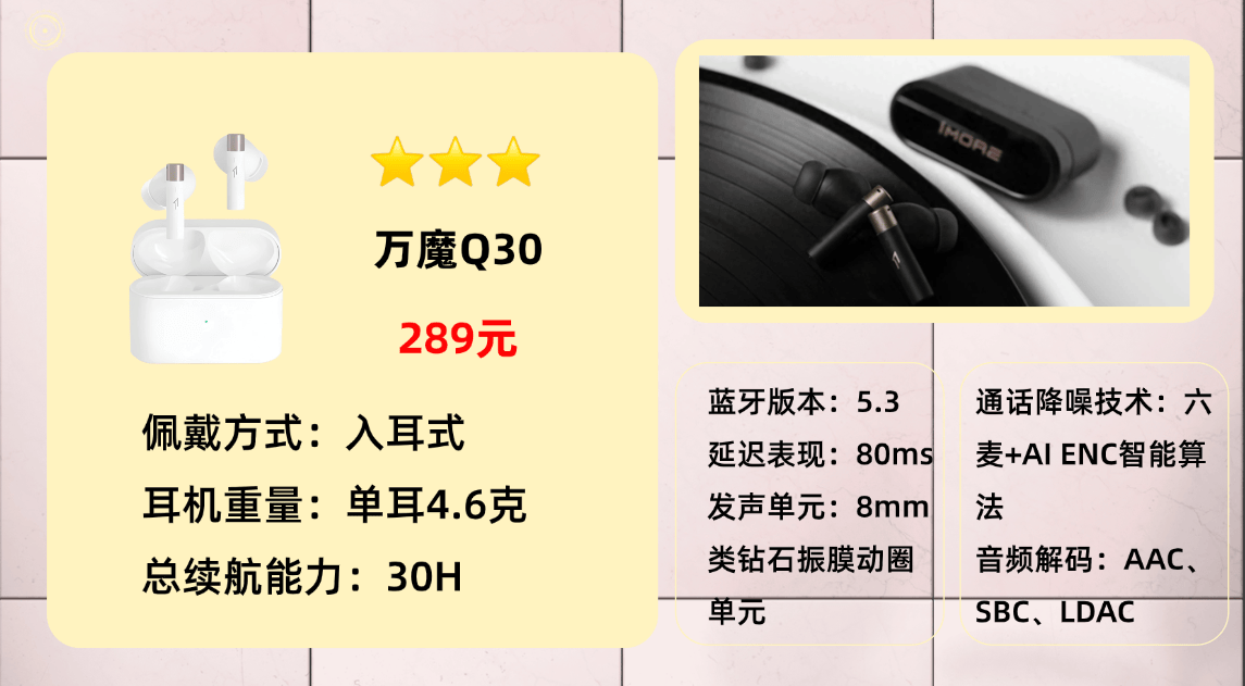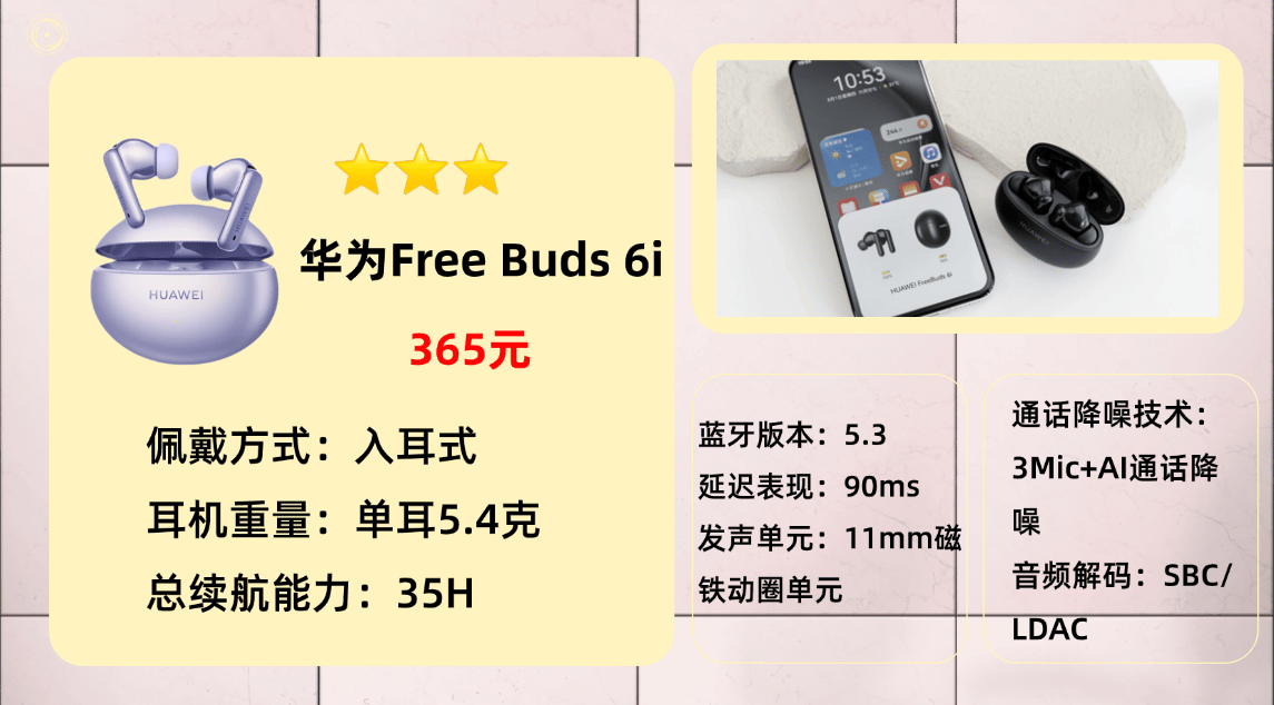 入选原因二:在音质部分,声音层次感的进步非常明显,低频更扎实、有弹性,声场开阔度比上一代更好,中高频细节清晰度也有所提升。虽然无法与发烧级HiFi耳机媲美,但在同价位中属于表现突出的类型。蓝牙从5.0升级到5.3后,连接更稳定、延迟更低,观影或游戏都能保持音画同步。续航方面,单次使用约5小时,开启降噪后为4小时左右,日常通勤和短途出行完全够用。