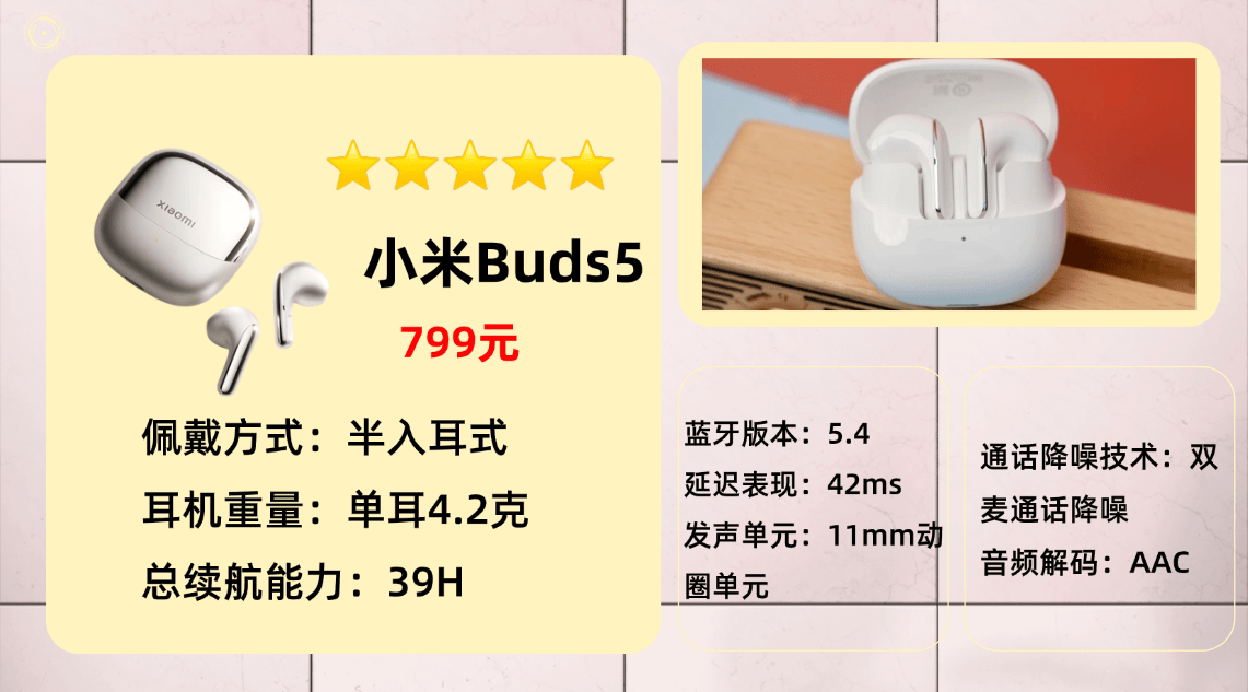 入选产品第八名:小 米B uds 5蓝牙耳机