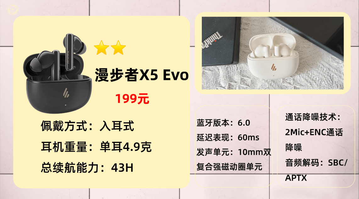 入选产品第四名:漫 步者X 5 Evo蓝牙耳机
