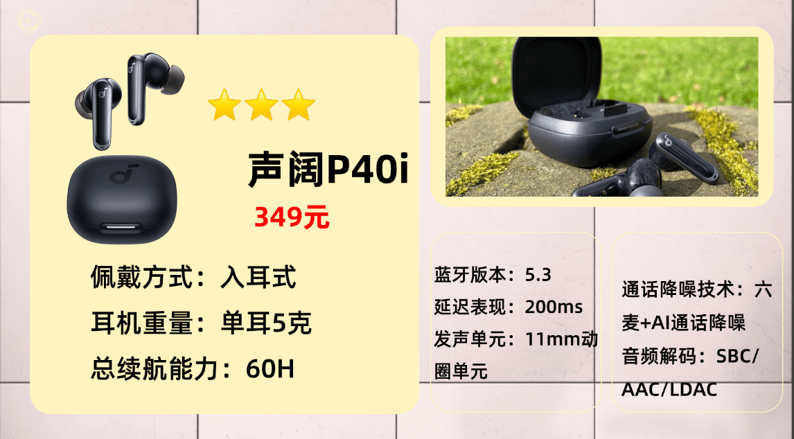 入选产品第十名:声 阔P 40i蓝牙耳机
